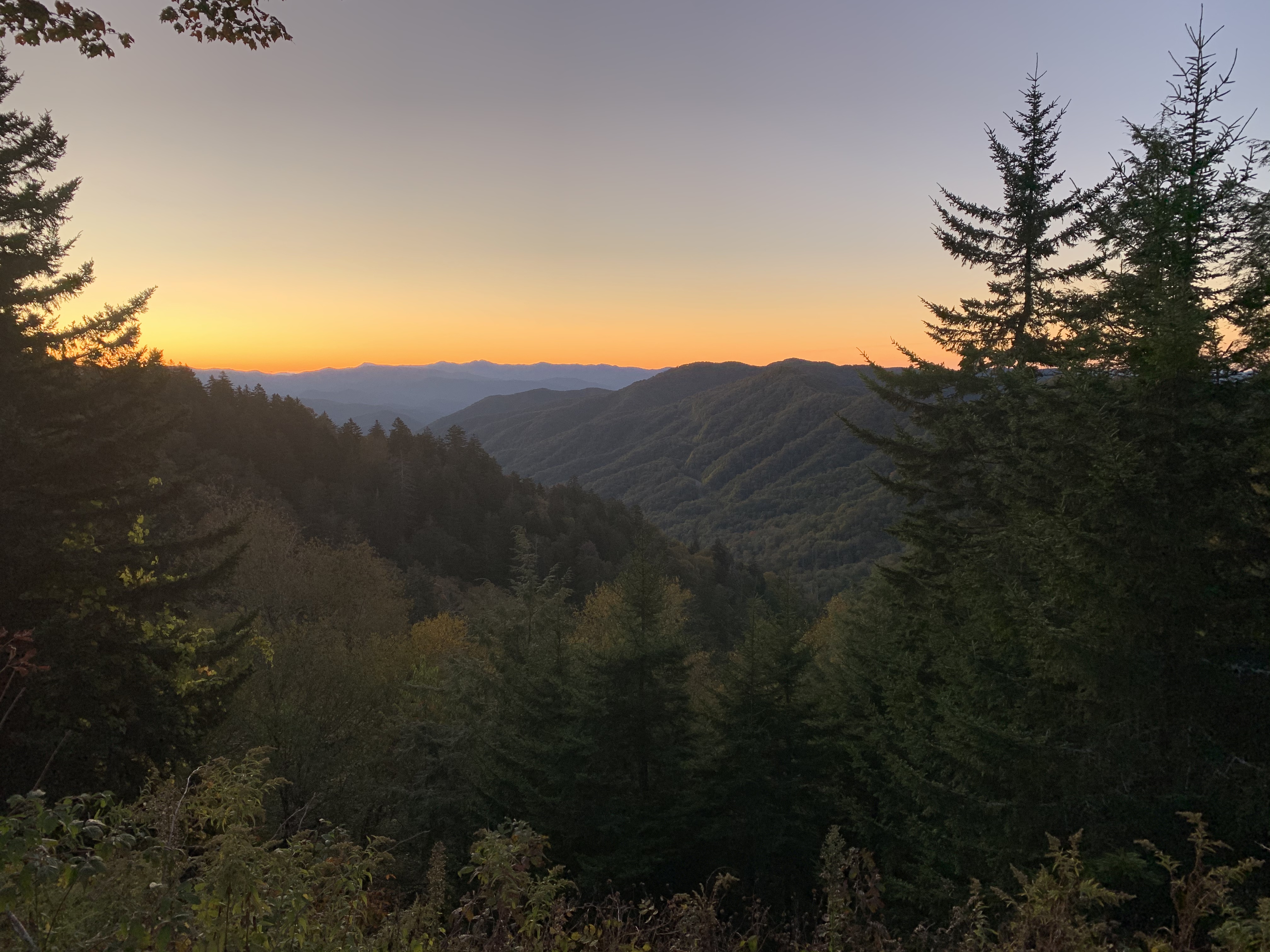 We got up early and drove to Newfound Gap for a beautiful sunrise. SUCH BEAUTIFUL MINUTES WATCING AVLove the red fall color in the early dawn.Always something special about watching the sun come up!Sunny posing on this beautiful morning.Just another selfie to prove we were there.š