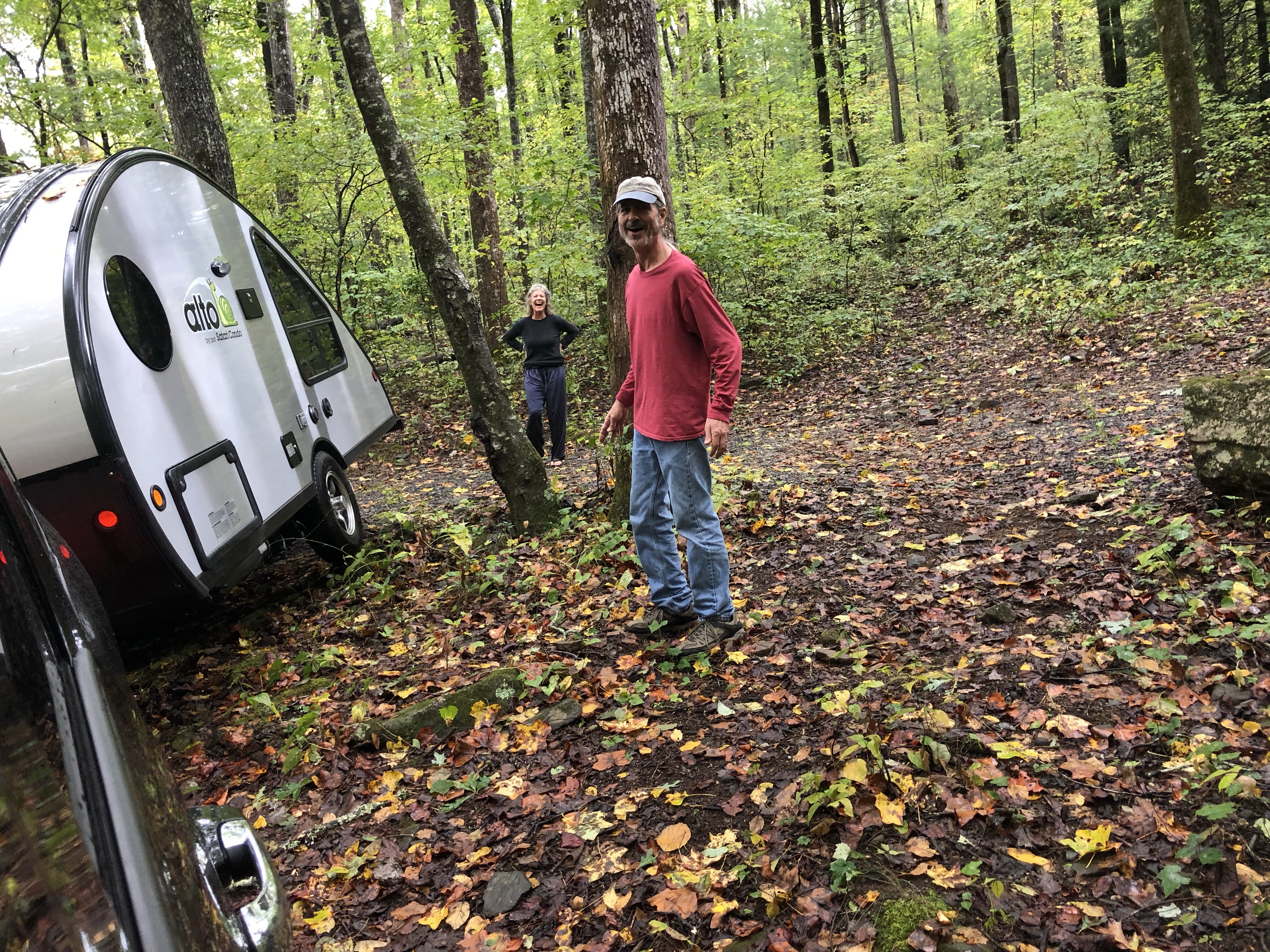 Our last morning at Andrewās Cove, we woke up to sunny weather. We packed up ready to head back to Helen for the afternoon. A hiker had parked his car in a place that made it hard for us to maneuver our way out with our camper. Our sweet neighbors jumped in to lend us a hand and we managed to worm our way out!