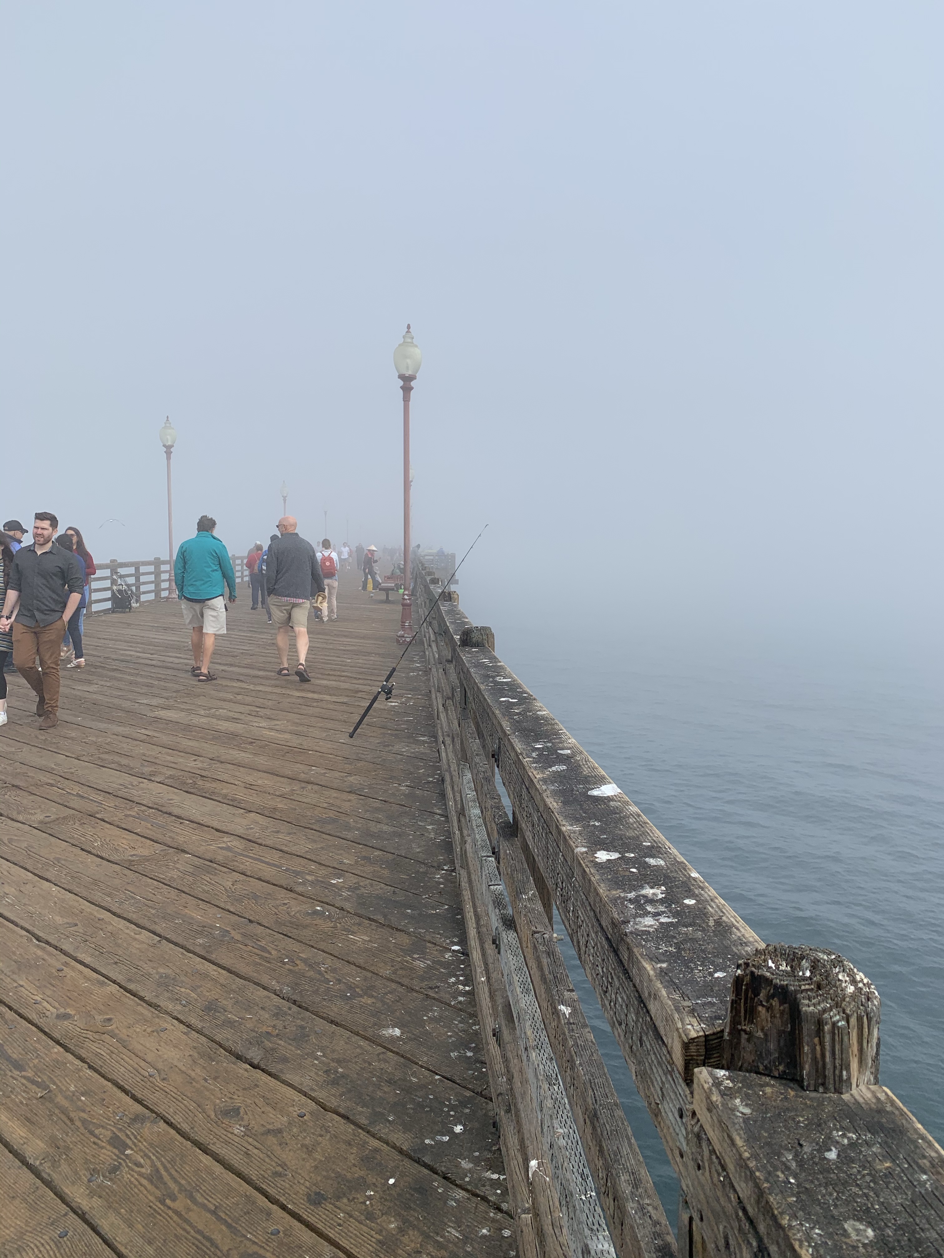 The fog was THICK as Roger and Duane ventured ahead of me on the 1/3 mile long Oceanside Pier. Hello there Mr. Pelican