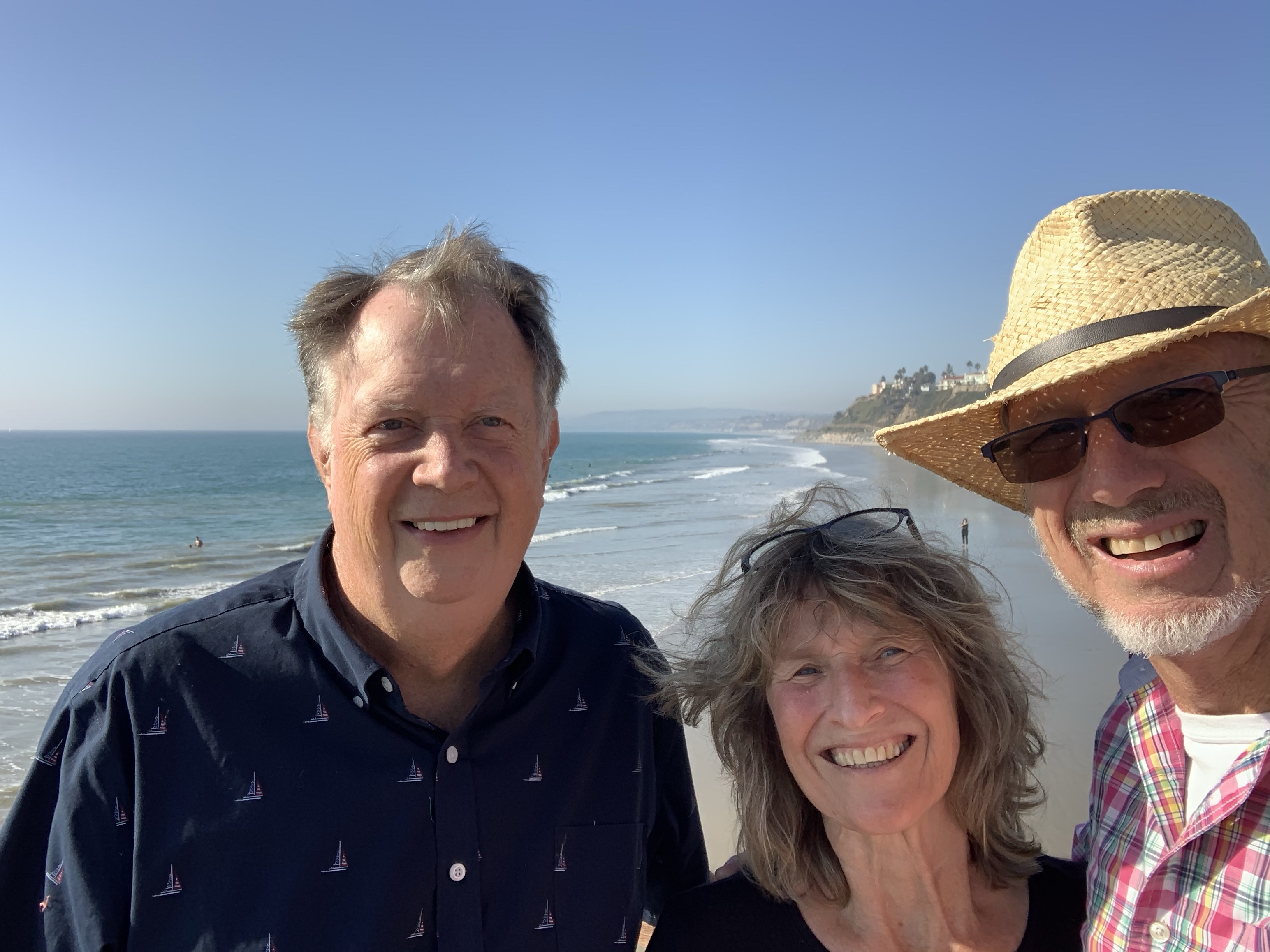 Enjoyed watching the surfers. Of course it made me miss out surfer son, Micah.Very glad to leave the fog of the Oceanside pier for a a stroll on sunny San Clemente pier.āļøThe traveling trio! Denise, we missed you while you were making those big bucks….Clam chowder with my sweetie and Duane. Three is not a crowd this time! Drove up high for a nice viewBuddies for a really long time!