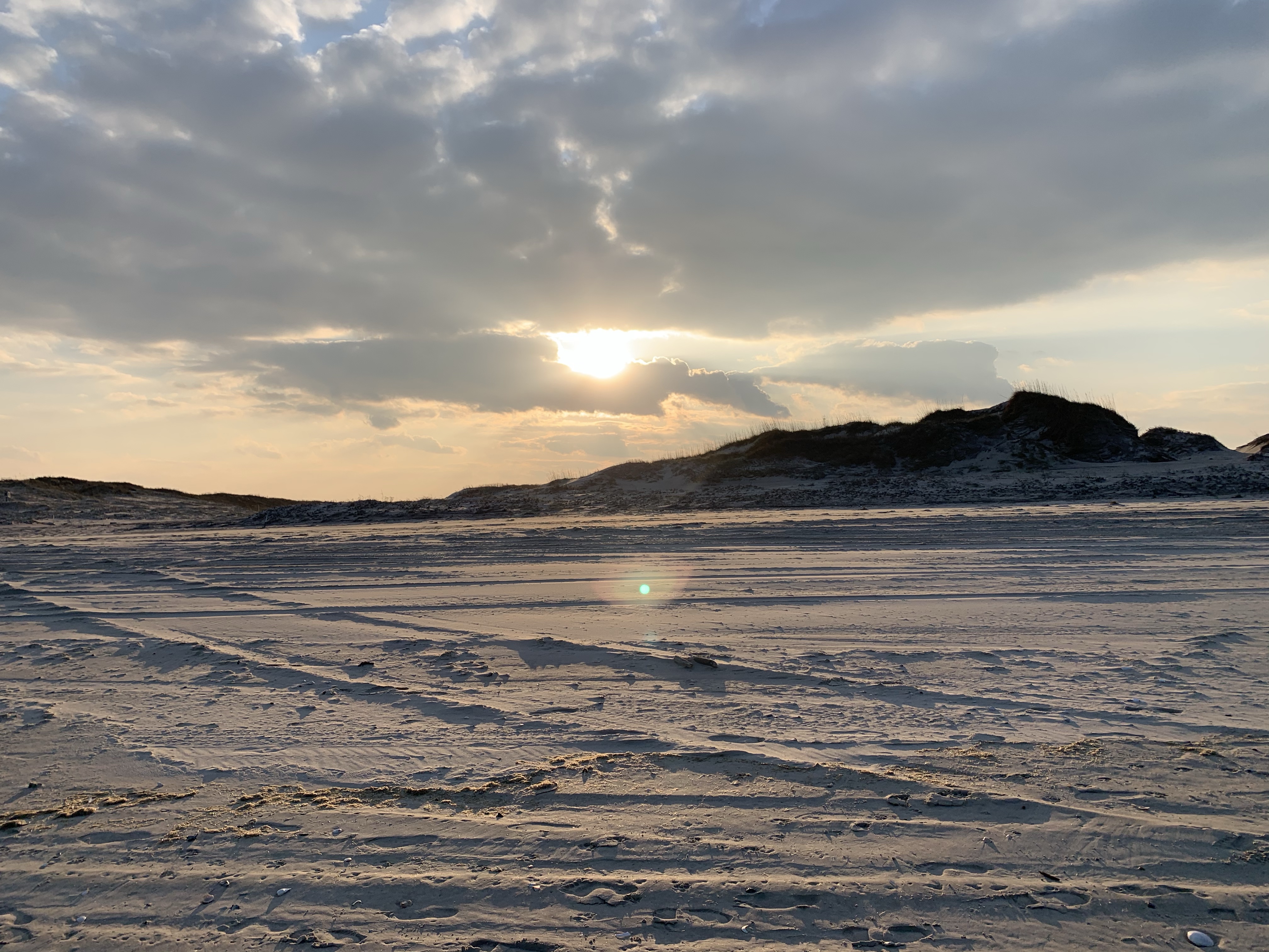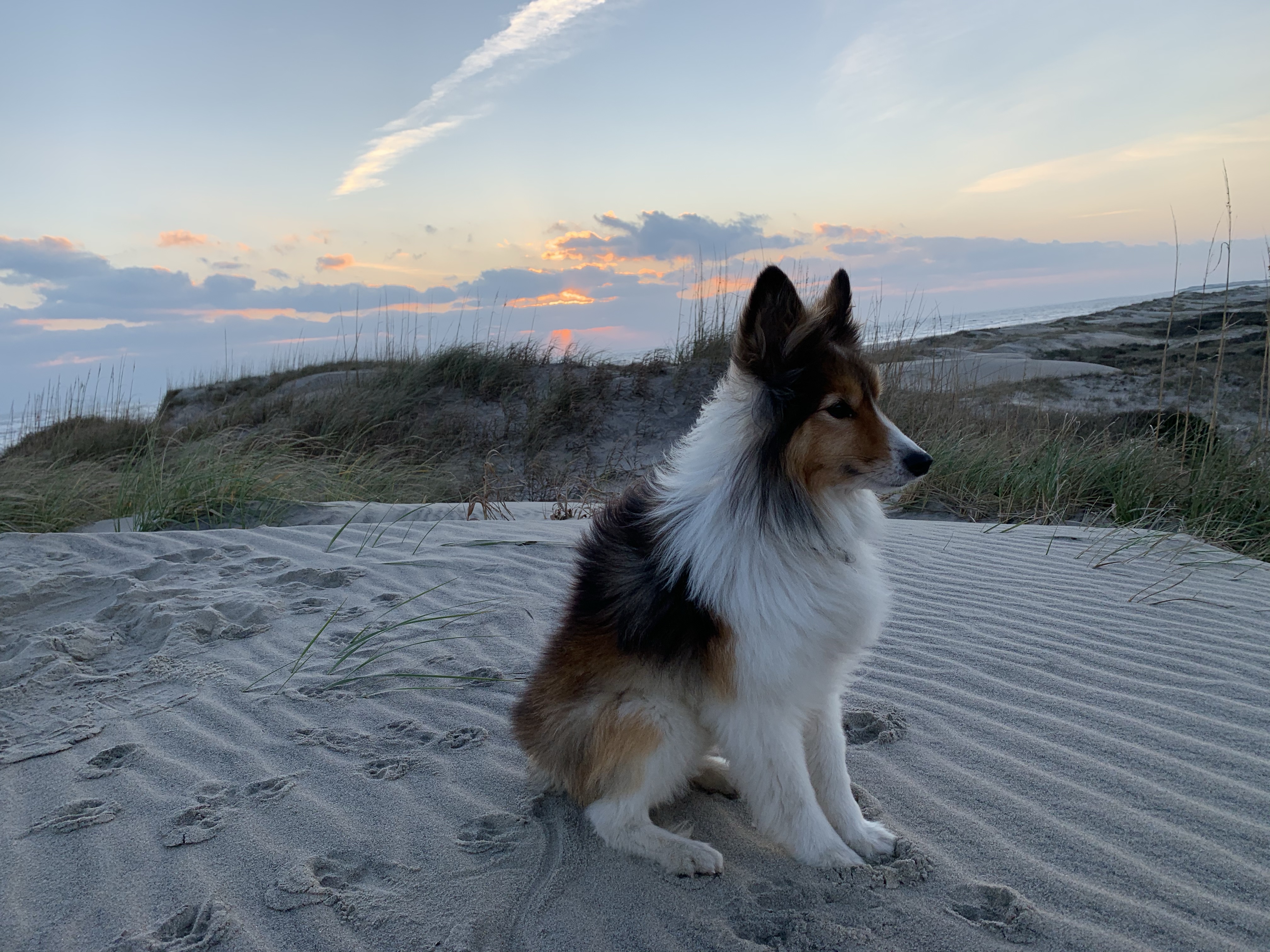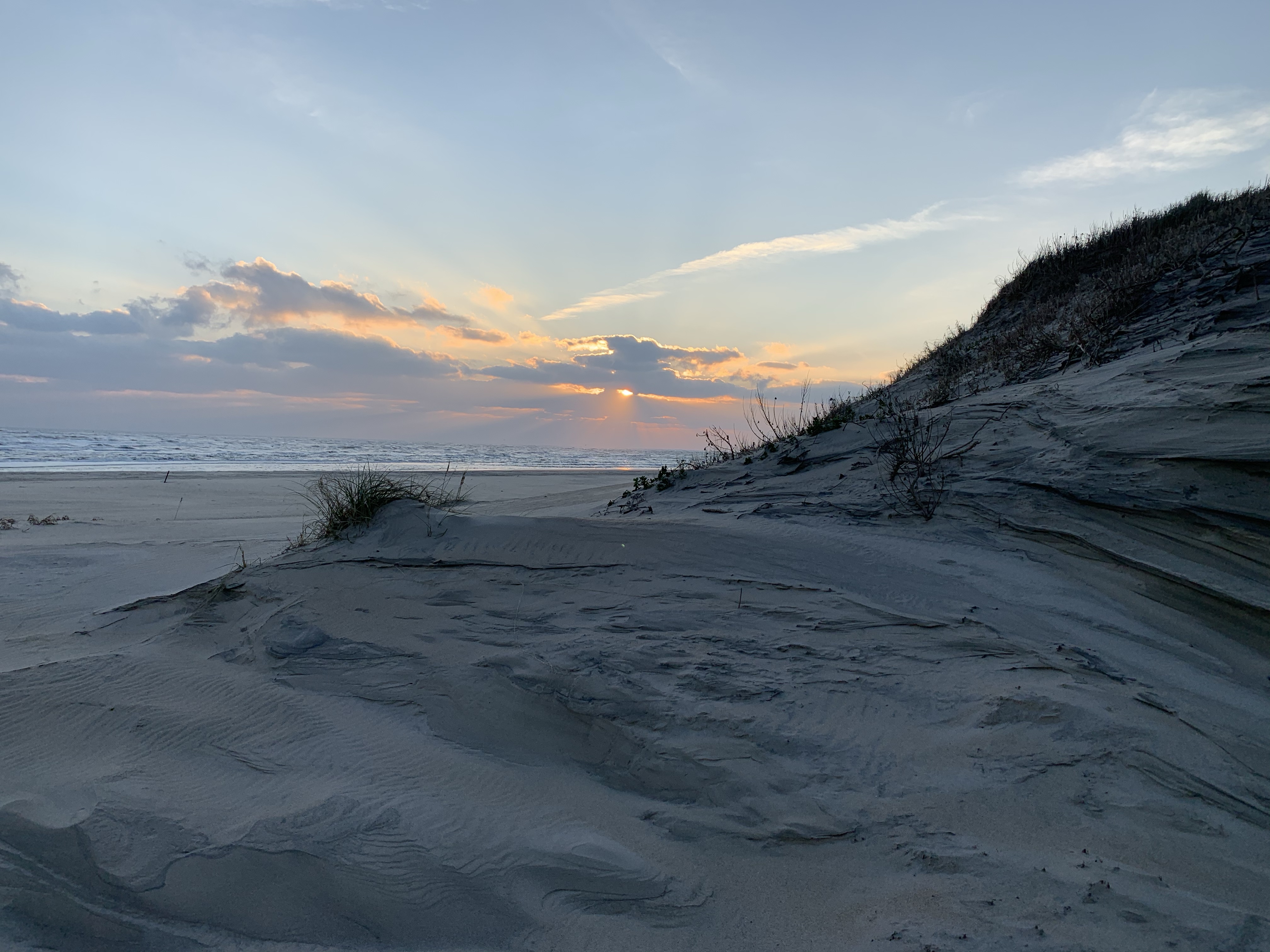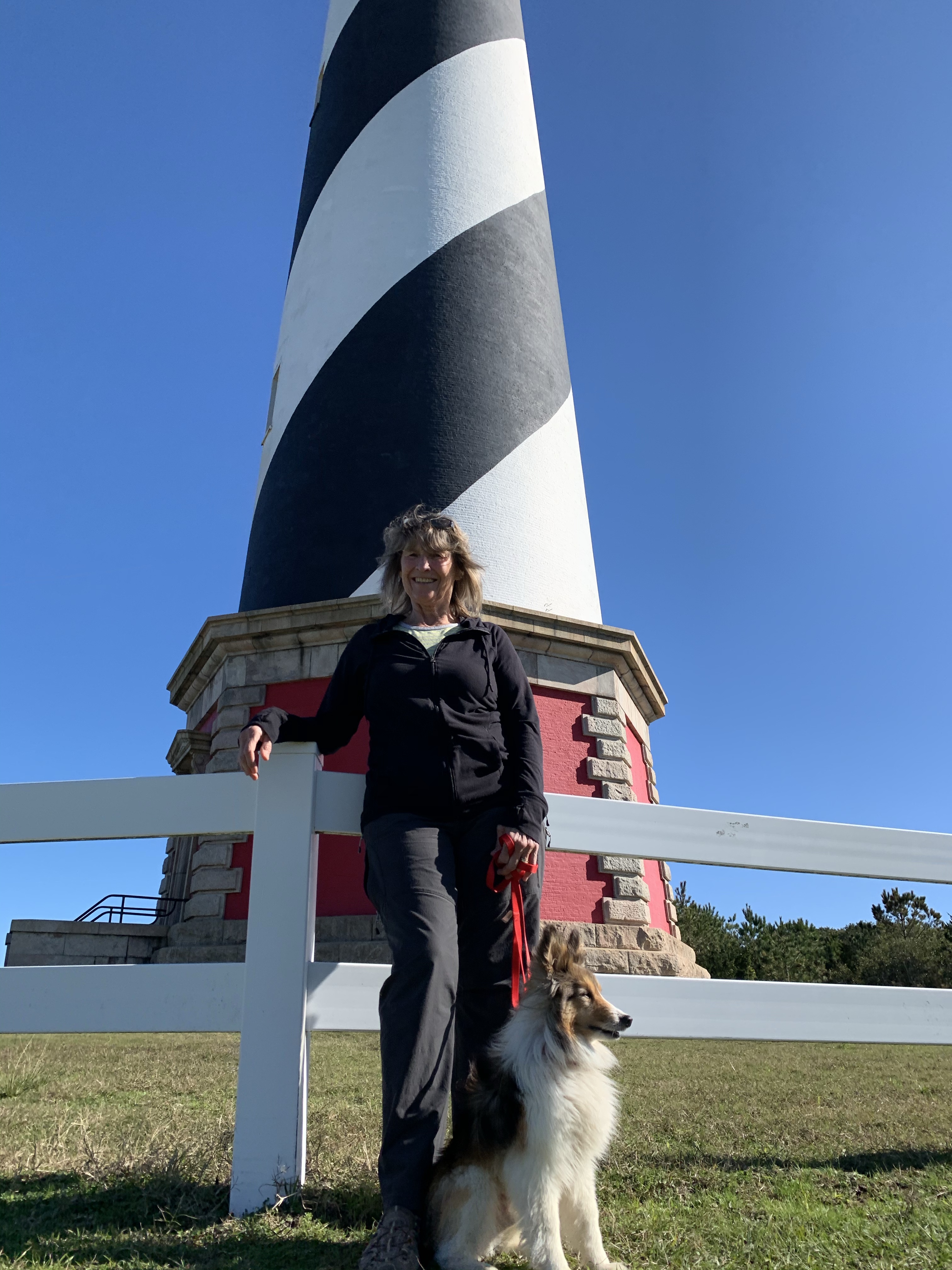 We left the wooded areas of North Carolina behind and headed for the coast. Iāve read lots of novels over the years that mentioned the Outer Banks, the chain of islands off the coast of North Carolina, so I was happy to go there! We camped at Oregon Inlet among the sand dunes. (Perfect for us Oregonians). We had an easy 10 minute walk to the beach. Except for a few fishermen, the beach was empty this time of year which made it perfect for long walks and letting Sunny off leash so he could run like the wind! We loved seeing beautiful sunrises in the morning and sunsets in the evening from our campsite. BOTH ARE OVER WATER, so that was a new experience….There was a lot to explore in this unique area and most days we drove out oto see the sights. We are so glad to experience the uniqueness of the Outer Banks. MORE TO COME.